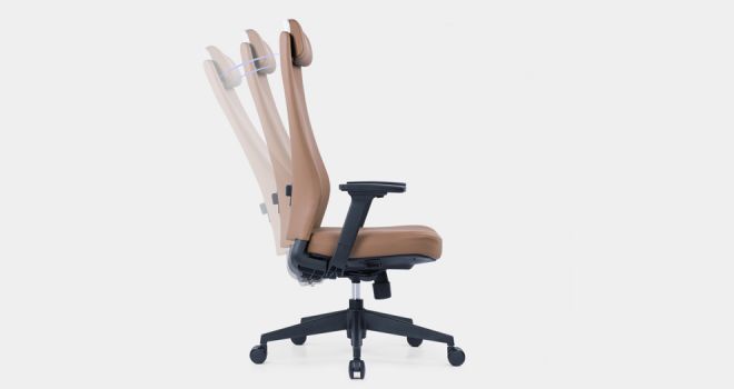 O encosto de uma cadeira usa couro dupla face ou capa de tecido, o couro é confortável e resiste à tensão, o tecido fica próximo à pele e não entupido
