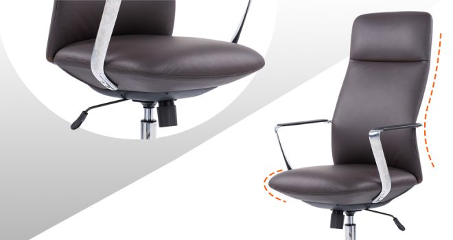 O encosto adota a estrutura de aço e o suporte elástico interno, em vez do processo tradicional de placa de madeira.
