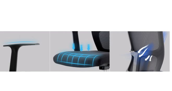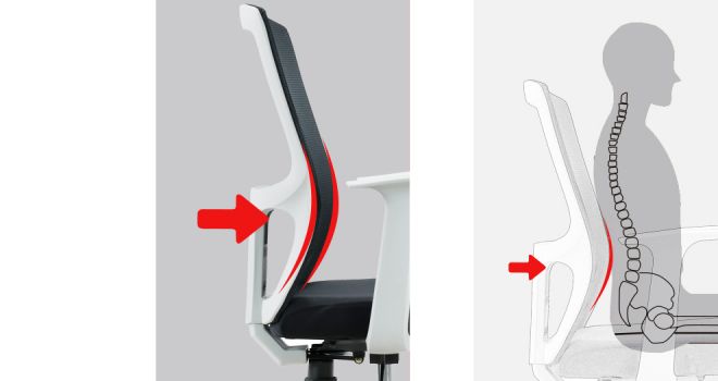 O encosto em forma de S concentra-se no apoio à coluna lombar, adapta-se a diferentes alturas e formas e concentra-se em apoiar e cuidar do seu coluna lombar.