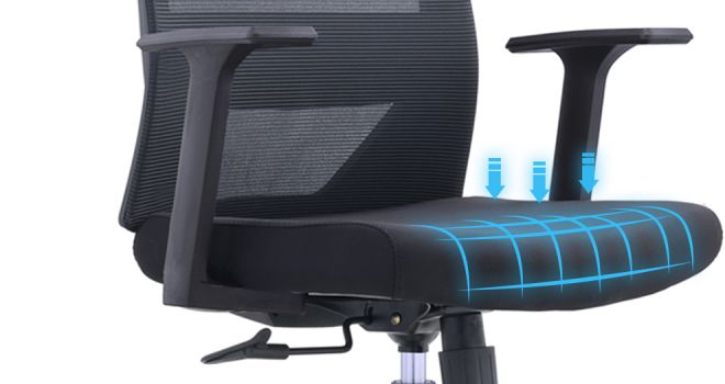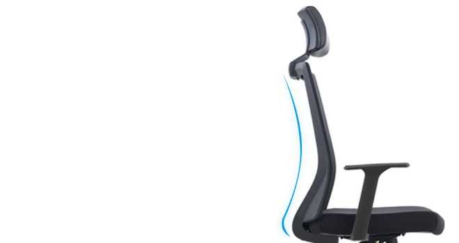 O design do encosto em forma de C se adapta às curvas do corpo humano para obter suporte equilibrado, dispersar a força e reduzir a pressão espinhal.