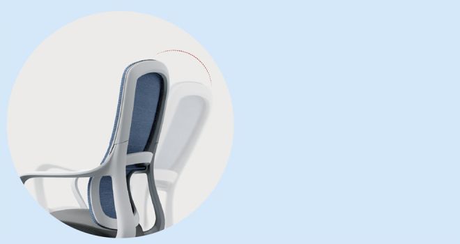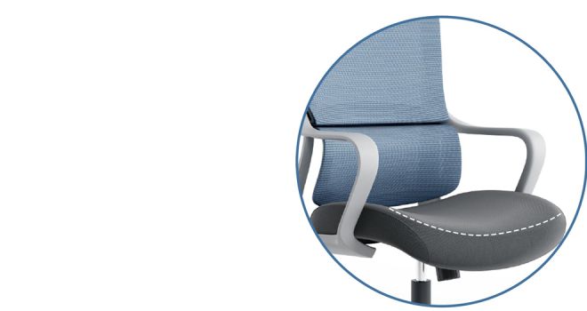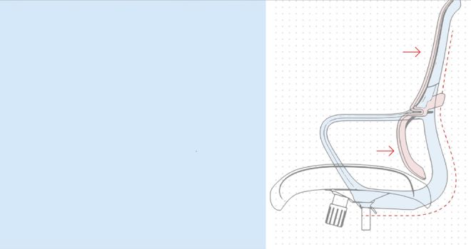 Assento e encosto sincronizados fornecem suporte adequado para a região lombar e as costas.