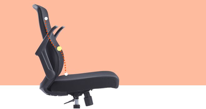 As curvas ergonômicas em forma de S imitam a coluna vertebral humana, apoiando efetivamente a curvatura lombar natural.