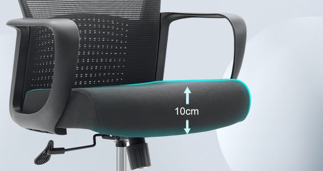 | Ajuste de altura do assento | Espuma moldada de 10 cm para almofada de assento, elevador a gás preto de comprimento estendido de 100 mm | / | ||