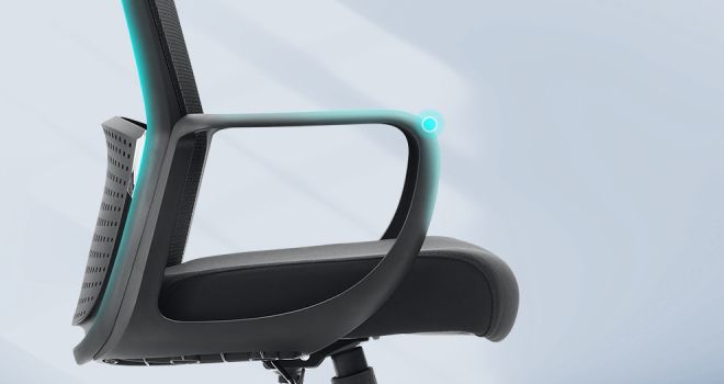 Apoio de braço e design de costas integrados, braços articulados para trás para suporte preciso